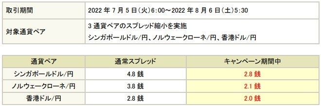 ① 「3通貨ペア!スプレッド縮小キャンペーン第3弾」 ※原則固定(例外あり)