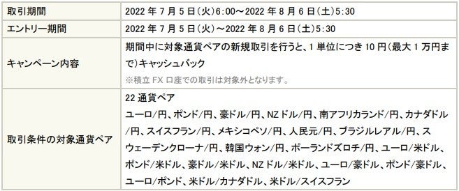 ② 「22通貨ペア!キャッシュバックキャンペーン」