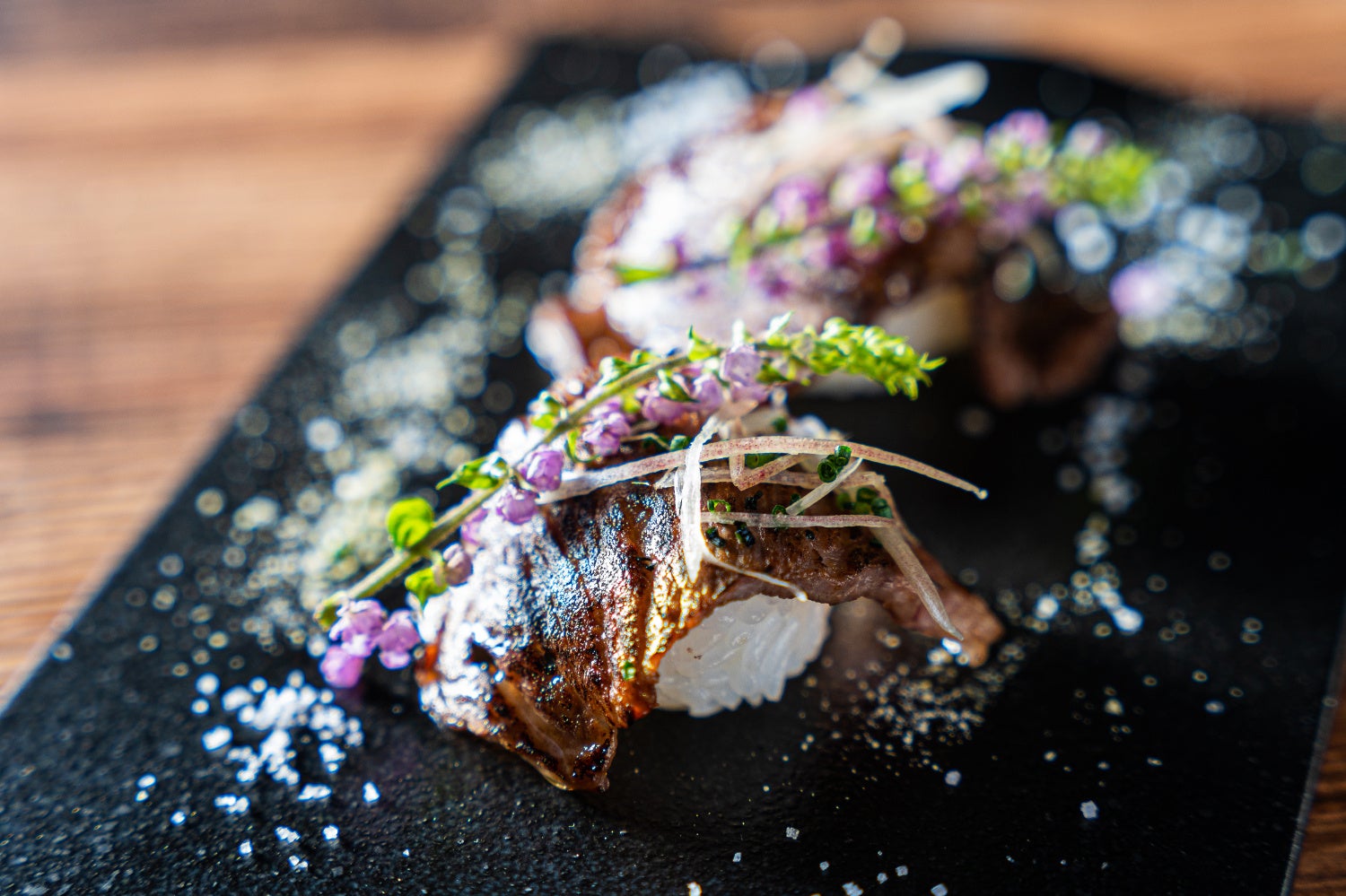「on A TABLE×MEAT ∞ CHANDON mob」のプレイベントとなる7月29日には、OTの人気メニューである肉寿司をプレゼント。とろけるような口当たりの和牛は一度食べるとやみつきに。また、肉料理に合うスパークリングワインが半額にてお楽しみいただけます。お友達やご家族と揃ってお越しください。