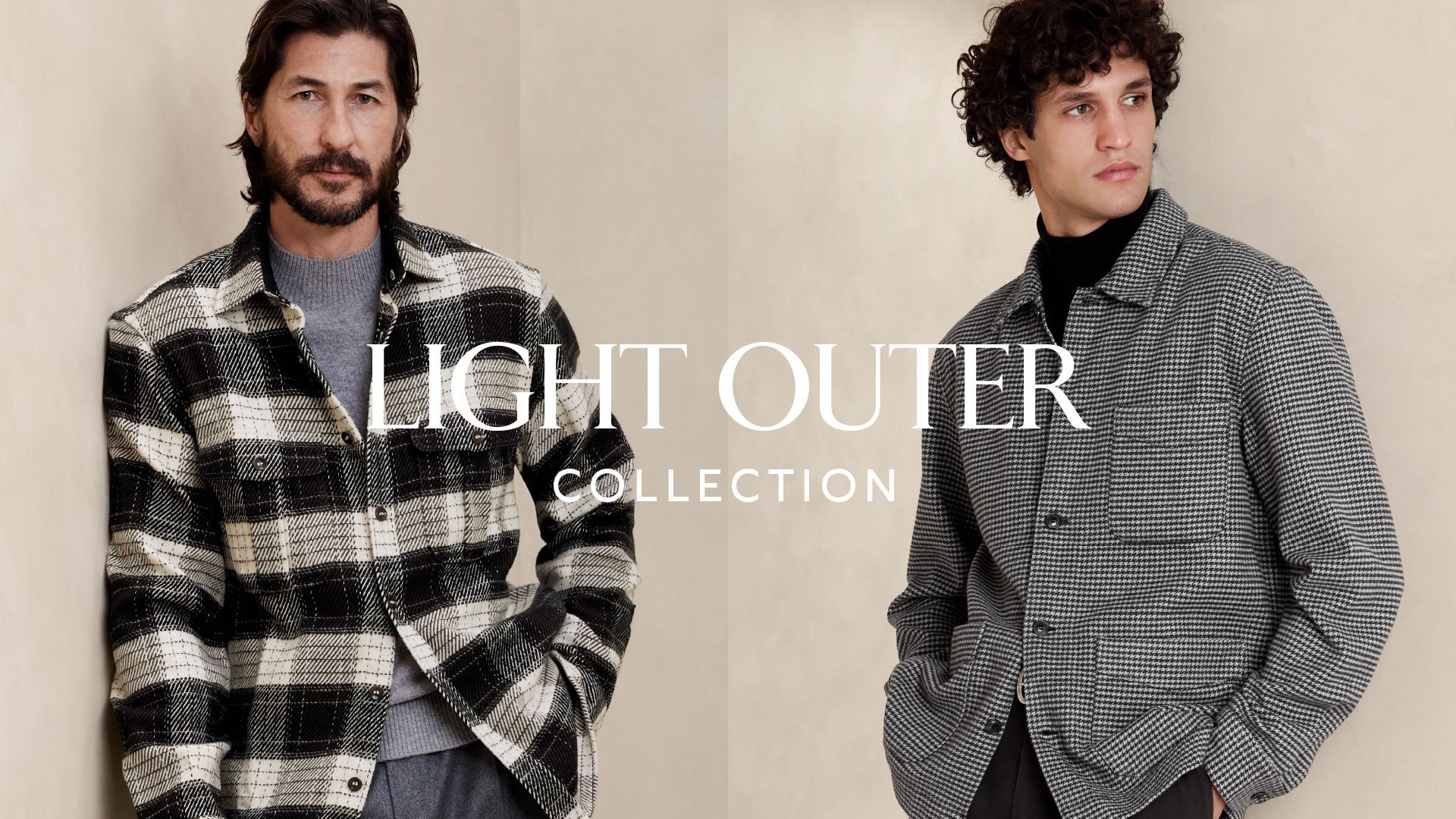 カジュアルながらも品の良いスタイルを実現させるバナナ・リパブリックのライトアウターコレクションをお楽しみください。