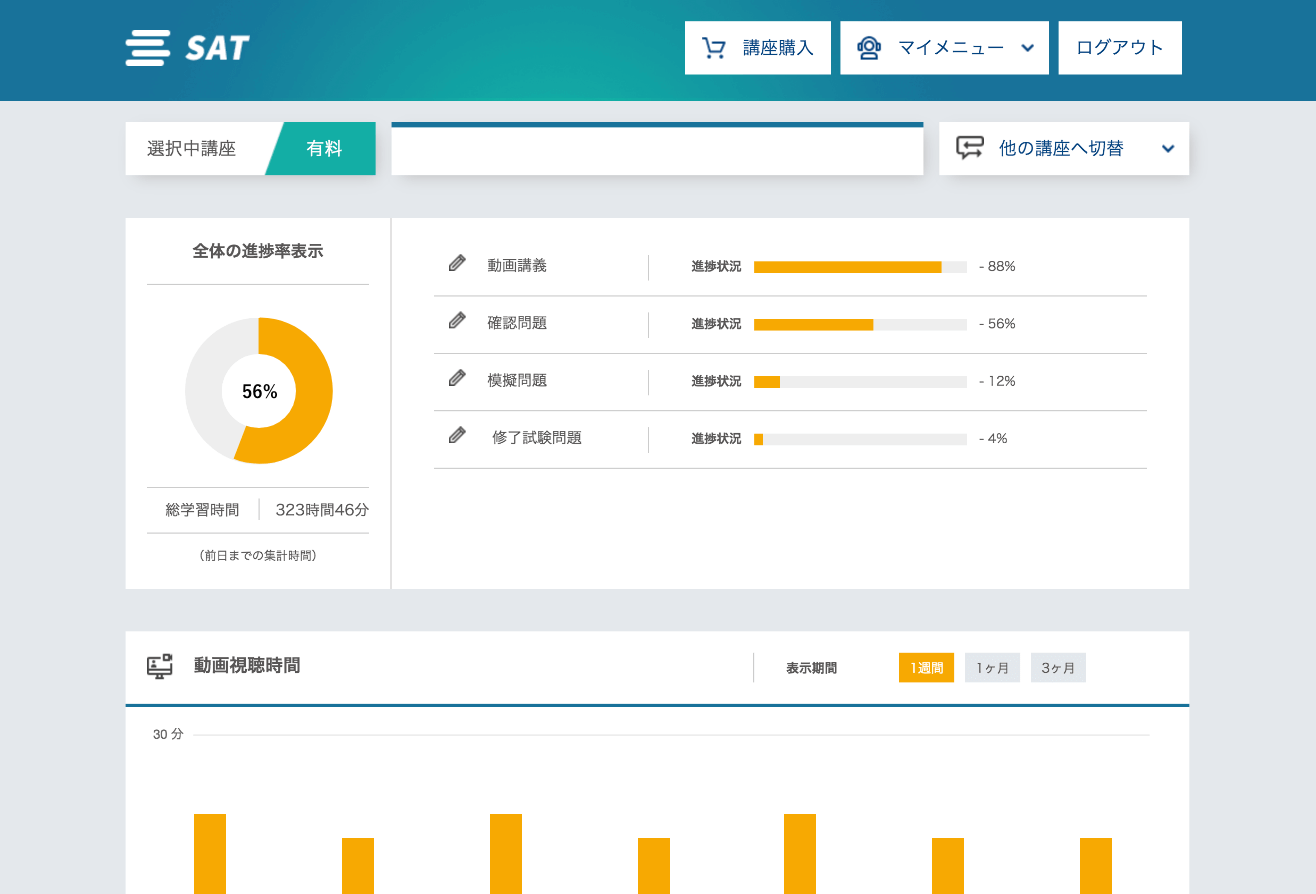 SATEラーニングシステムでは、「学習状況機能」があります。