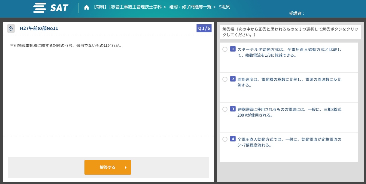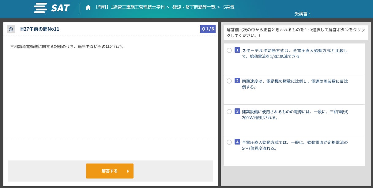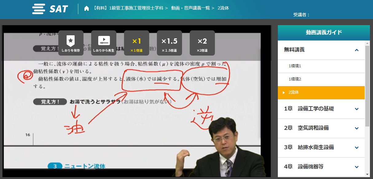 SATの施工管理技士講座は、1講義が10分~20分前後で構成されており、短時間で確実に前進出来るよう作られています。