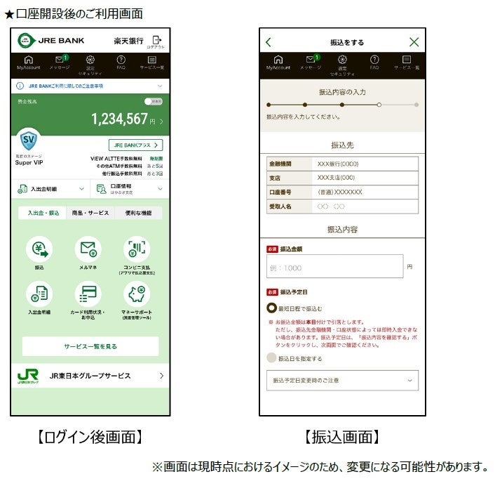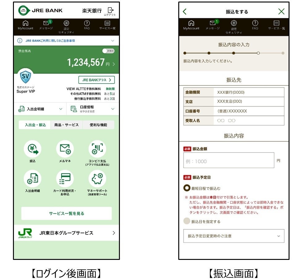 ※「JRE BANK」においては楽天IDとの連携は行いません。また楽天ポイントは貯まりません。