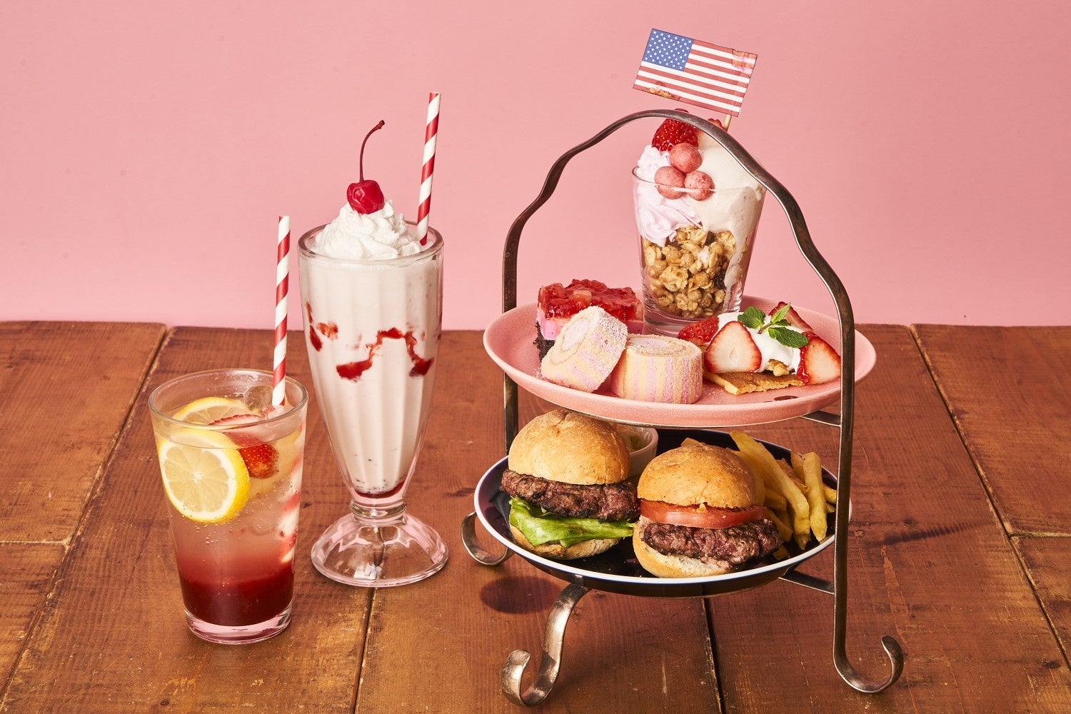 【いちごスイーツ&ミニハンバーガーのアフタヌーンティープラン】いちごシェイク・レモネードなど20種以上が飲み放題♪立川GREEN SPRINGS内「under the cascade」で販売スタート