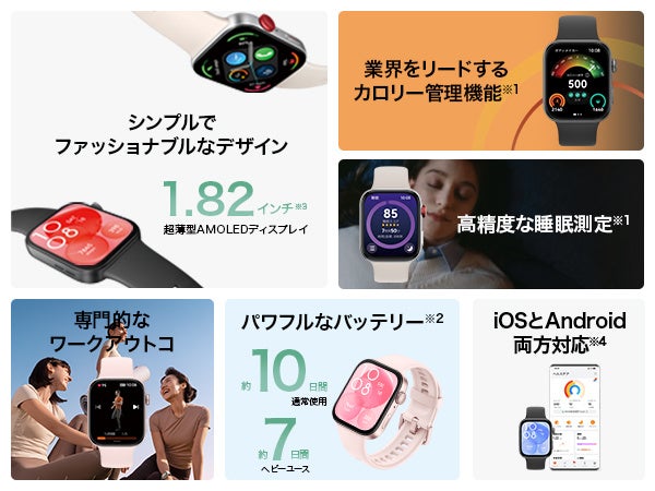 Bluetooth通話をはじめとした各種アシスタント機能も充実し、通常使用※2で約10日間持続するロングバッテリーにより、頻繁な充電は必要なくなりました。エントリーモデルから1歩進んだデザイン性、快適性、機能性をお求めの方にも、ご満足いただける1台です。
