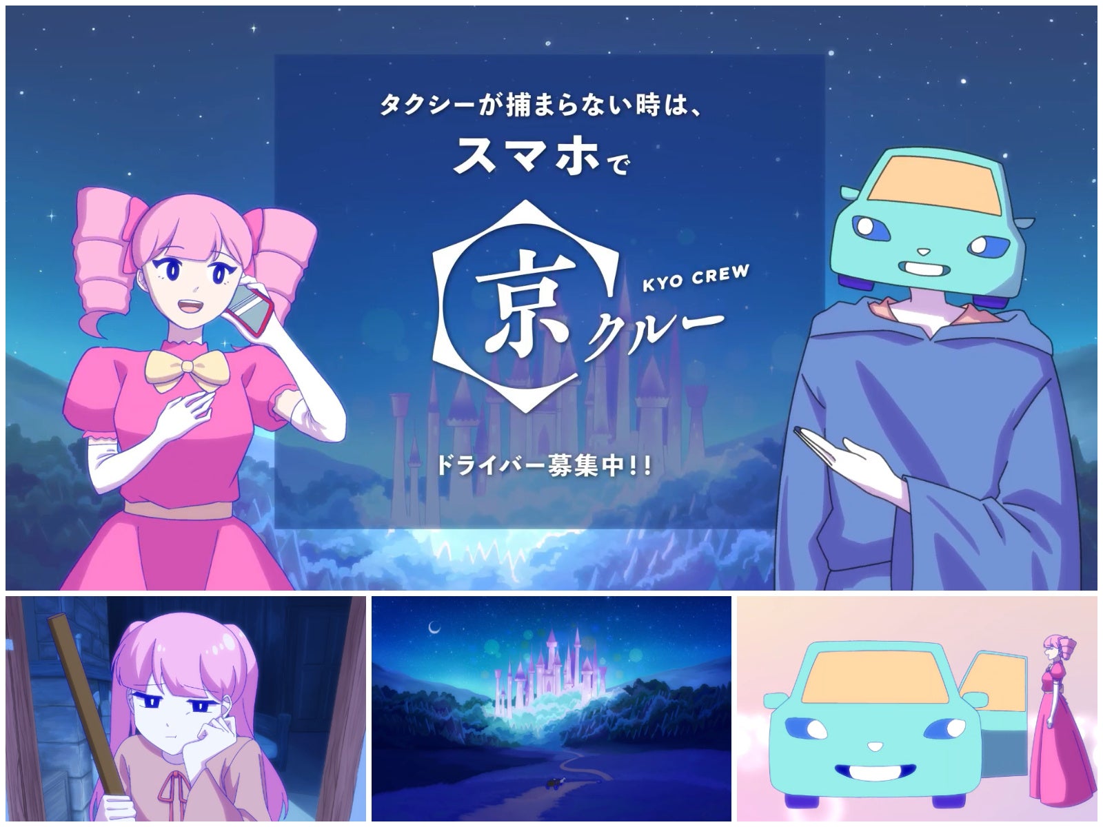 京都府タクシー協会からの委託研究として、京都芸術大学 キャラクターデザイン学科の野村ゼミは、ライドシェアサービス【京クルー】の可能性と課題に関する調査分析を実施し、研究成果を基にアニメーション制作プロジェクトを展開しました。