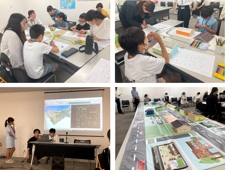 参加した子供たちは、どのような部屋や間取りするか悩みつつも、それぞれ理想の家の設計を楽しんでいました。その後、模型を作成し、美しい街並みを完成させました。埼玉県が実施した当日のアンケートでは、「とても楽しかった」「楽しかった」が100%となり、大変好評なご意見を頂きました。