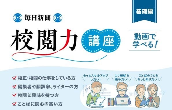毎日新聞社は2024年9月、校閲センターの運営するサイト「毎日ことばplus」から、校閲の基礎知識や技術を身につけることができる動画「校閲力講座」の「基礎編」第3期をリリースしました。