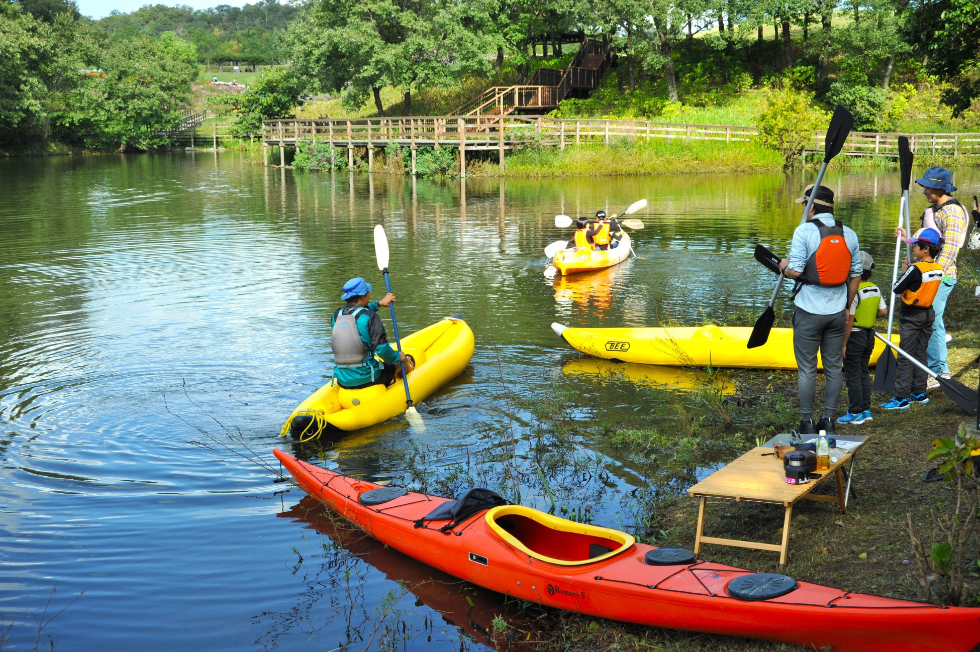 また、芝生広場に隣接した飛竜池ではカヤックの体験もできますよ!