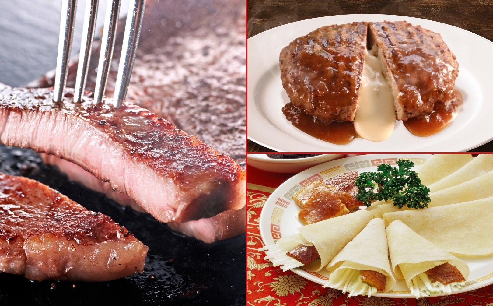 (チーズインハンバーグはスペシャルコース以上、ビーフステーキと北京ダックはプレミアムコースでのご提供となります)