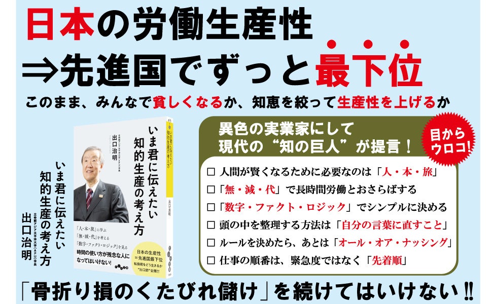 出口治明が提言! 日本から残業をなくし生産性を上げる具体策!『いま君に伝えたい知的生産の考え方 』発売(10/12)。