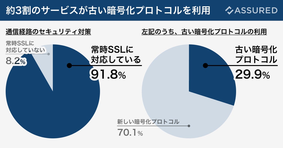 - 30%のサービスで、TLS1.0等の古い暗号化プロトコルを利用