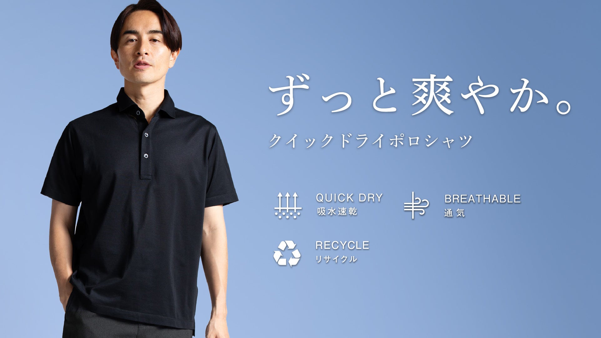 この度、夏場の2大不快要素『べたつき・蒸れ』を解決し、爽やかな着心地を保つポロシャツ「クイックドライポロシャツ」を5月2日(金)13:00より発売いたします。本商品は、湿度が高い日本の夏を快適に過ごせるよう日本製の機能性リサイクル素材「Sorbtek/ソーブテック」を使用。優れた吸水速乾と通気性でべたつきや蒸れなど、夏場の不快感から解放します。