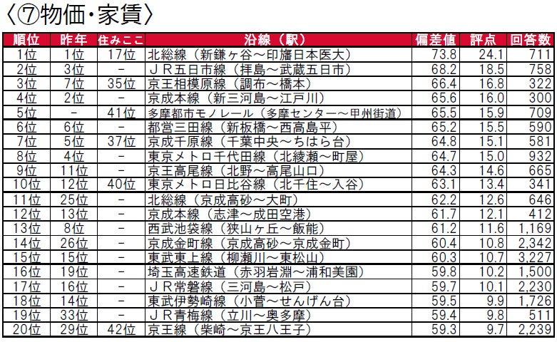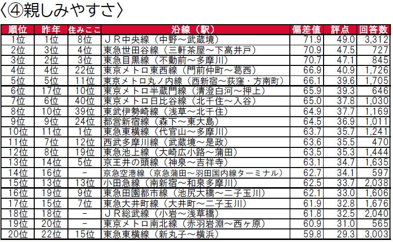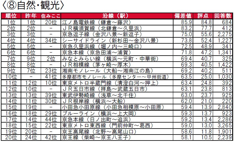 - 街の住みここち沿線ランキング2021<首都圏版> 因子別評価 TOP20 ①