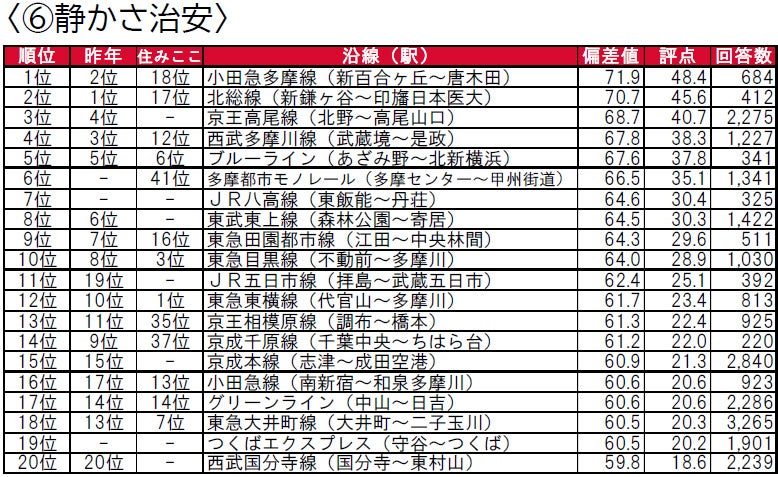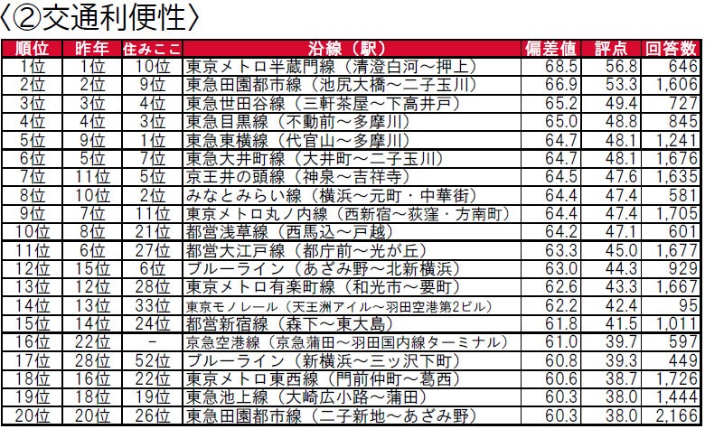 - 街の住みここち沿線ランキング2021<首都圏版> 因子別評価 TOP20 ②