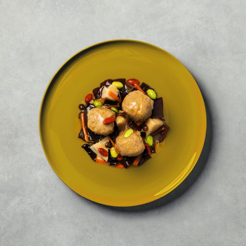 レンズ豆を使用することで、多くの女性に不足している鉄分を豊富に摂取することができる一品にしました。また、生姜を千切りにして加えることで、食感や風味をアップさせています。さらに、ポリフェノールを多く含むクコの実をたっぷりと使用しています。具材や肉団子はあえて大きめにすることで満足感を出し、クコの実・枝豆・きくらげなど数種類の具材を使用することで彩りも食感も楽しめる一品になっています。