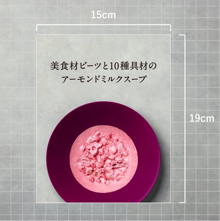 一杯の中でビタミンC、E、K、B6、葉酸、パントテン酸の6つのビタミンが摂取できる、それぞれの食材の旨味を生かした濃厚な美のスープとなっています。