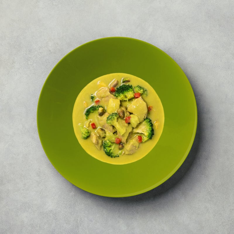 ビタミン類や食物繊維など多くの栄養素が含まれているアボカドをベースとして使用したほか、ブロッコリーや鶏肉、赤パプリカなど、グリーンスープの中でも映える食材を取り入れ、ピスタチオは食感のアクセントとして加えました。