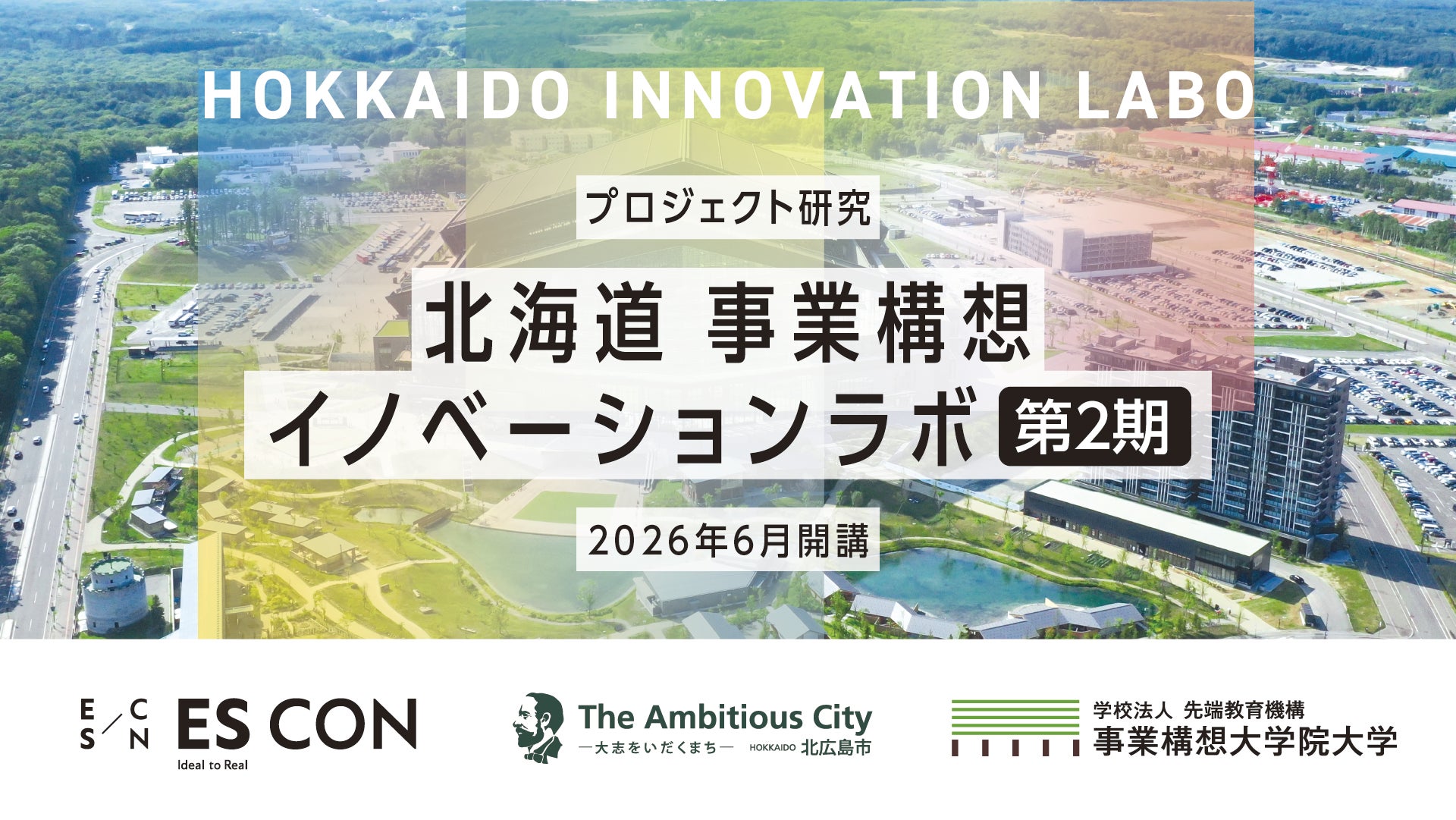 学校法人先端教育機構 事業構想大学院大学(本部:東京都港区、学長:田中里沙)は、株式会社エスコンおよび北広島市との産学官連携により実施する人材育成プログラム「北海道 事業構想イノベーションラボ」の第2期を、2026年6月より開講いたします。これに伴い、研究員の募集を開始するとともに、4月より説明会を開催いたします。