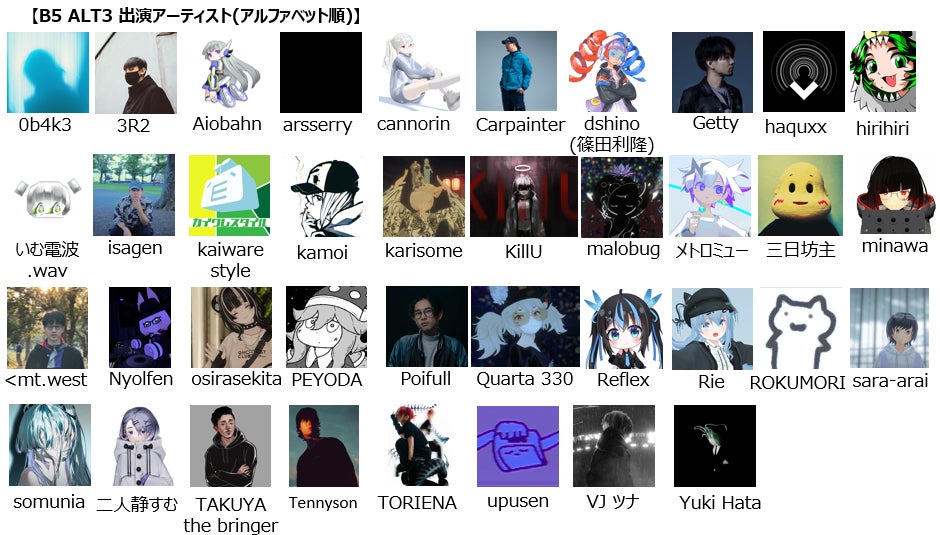 人気バーチャルクラブ「GHOSTCLUB」主催0b4k3 がプロデュースするALT3に、Aiobahn、<mt.west(パソコン音楽クラブ)、somunia、メトロミュー、Tennysonらが出演します。