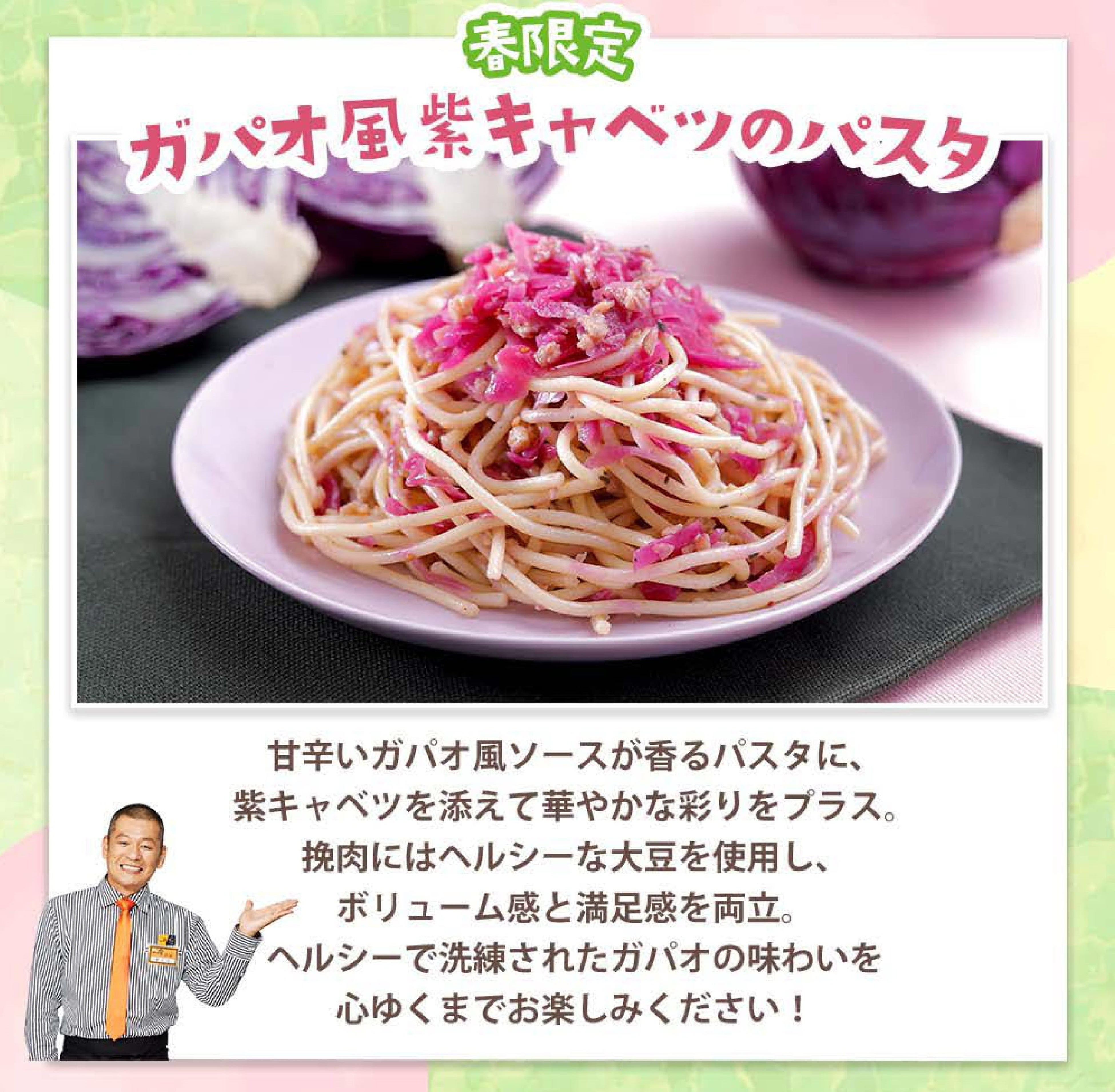 甘辛いガパオ風ソースが香るパスタに、紫キャベツを添えて華やかな彩をプラス。挽肉にはヘルシーな大豆を使用し、ボリューム感と満足感を両立。ヘルシーで洗練されたガパオの味わいを心ゆくまでお楽しみください。