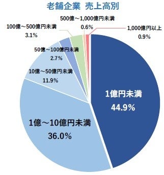 売上高は半数近い44.9%が「1億円未満」、老舗出現率では「1,000億円以上」がトップ