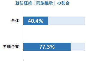 現代表の就任経緯、老舗企業の「同族継承」割合は77.3%、全体を大きく上回る