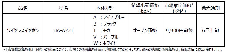 株式会社JVCケンウッドは、Victorブランドより、完全ワイヤレスイヤホンの新ラインアップとして、「HA-A22T」を6月上旬より発売します。