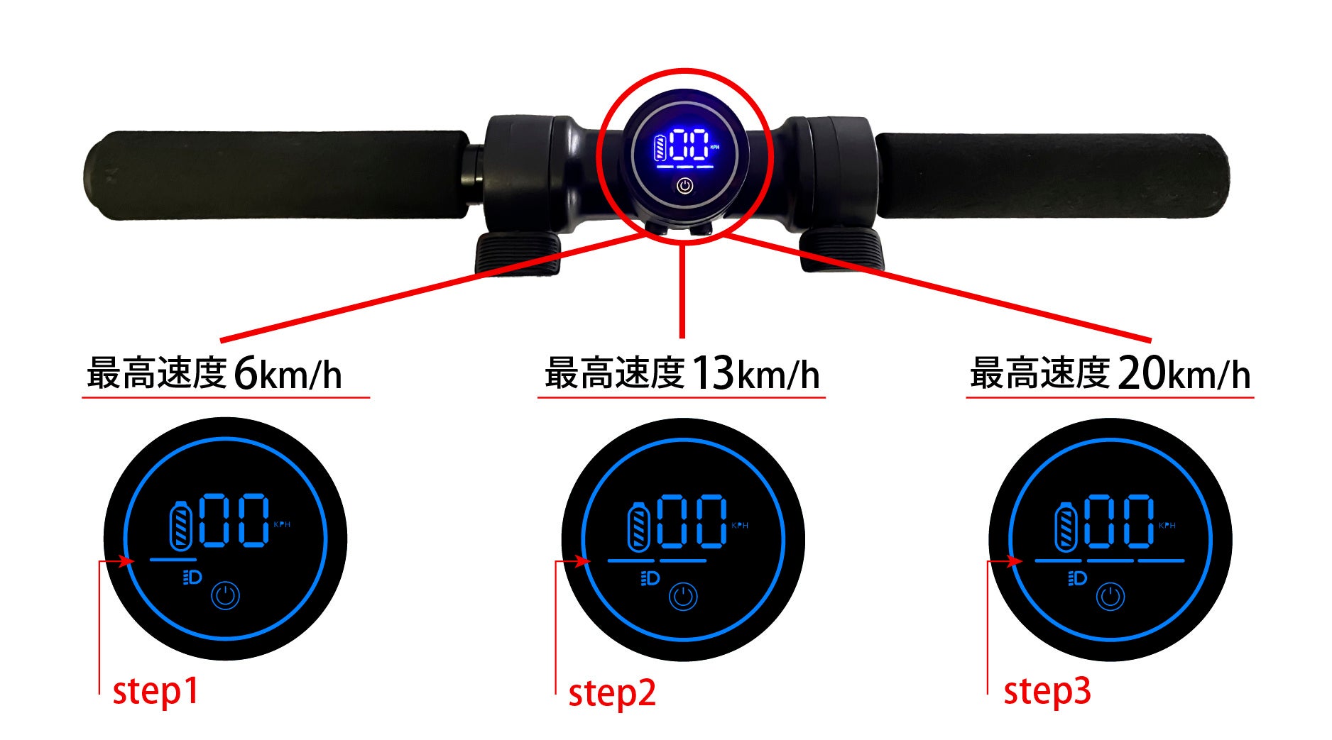 液晶ディスプレイで、バッテリー残量と走行スピードを表示できるので、一目で確認でき安心・安全です。