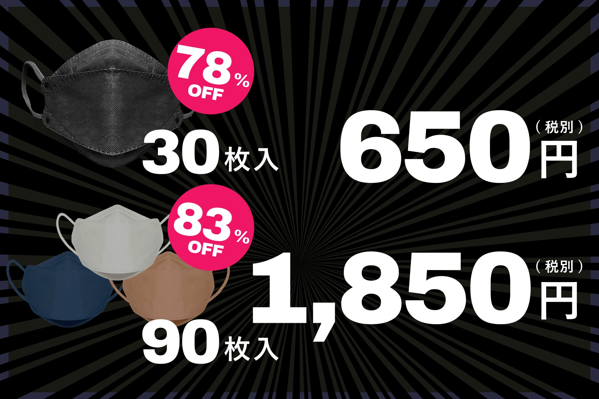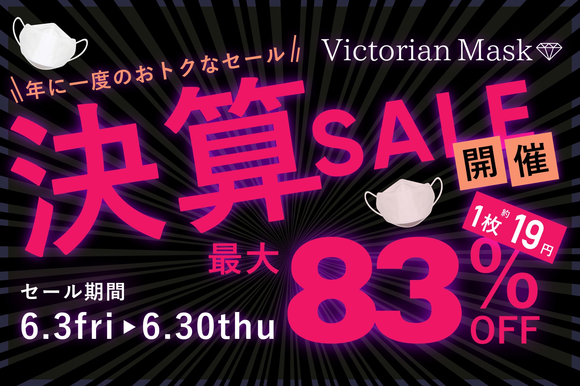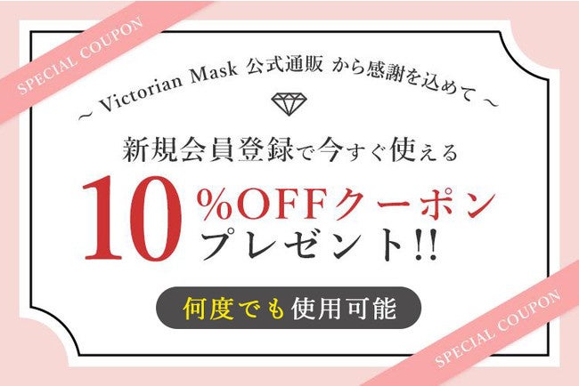 【衝撃価格‼】ダイヤモンド形状の立体マスク“Victorian mask”MAX83%OFFの期間限定決算セールを開催!30枚入り780円など大幅プライスダウン!