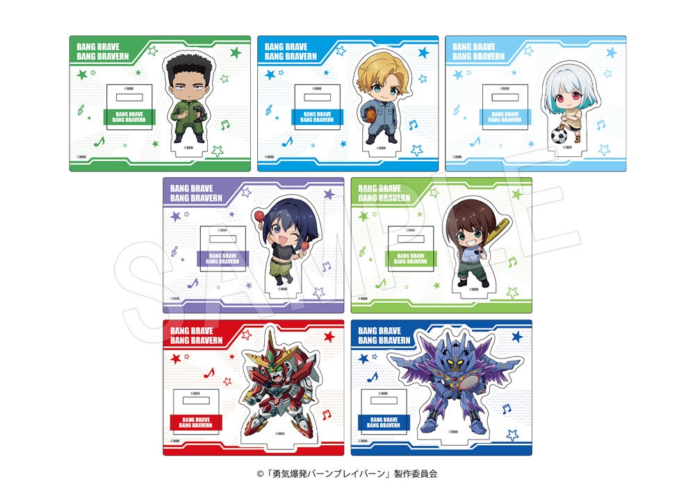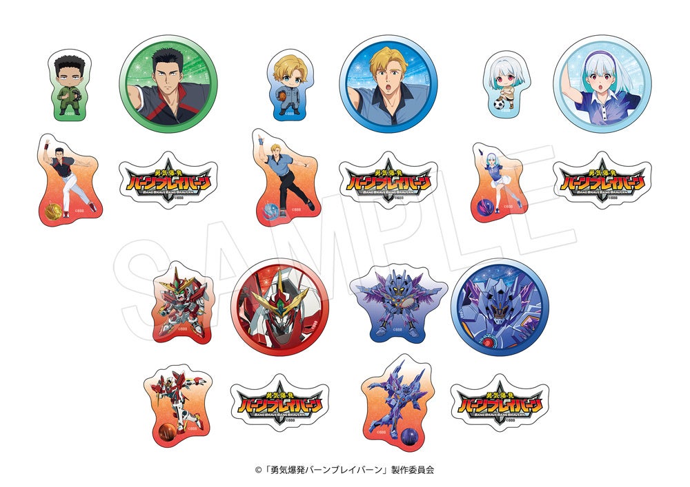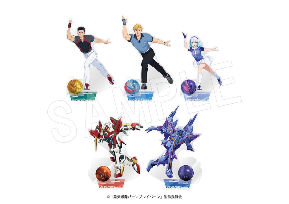 ボウリングを楽しむイサミやブレイバーンたちの新規描き下ろしビジュアルを使用した「アクリルフィギュアスタンド」やミニキャライラストを使用した「トレーディング缶バッジ」のほか、「スポーツタオル」などコラボならではの新作グッズが多数登場!