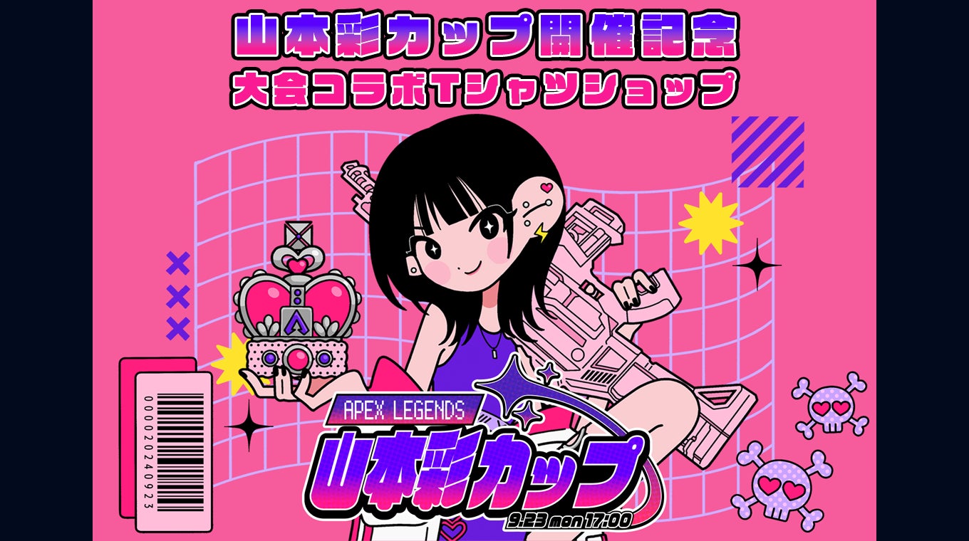 大人気ゲームタイトルApex Legendsのカジュアル大会として開催する山本彩presents『Apex Legends山本彩カップ』を記念して、UP-TとのコラボレーションTシャツが登場!