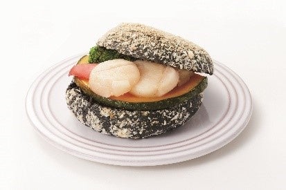 道産小麦のバンズに帆立貝柱、チェダーチーズを挟んで