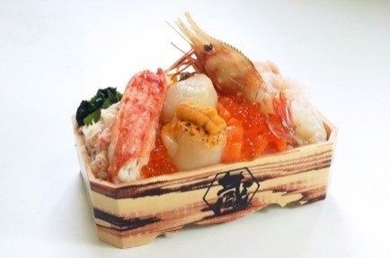 2種の帆立、紋別産たらばがに、いくら、ぼたんえび、甘えびがプルプルの「海の玉手箱」