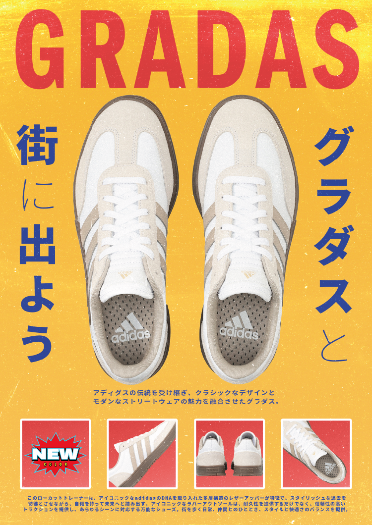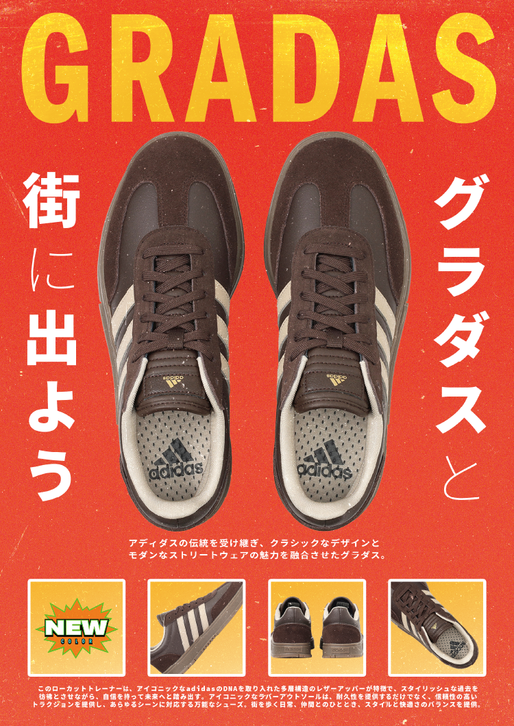 ABCマートは、Z世代を中心に人気を集めるアディダスのスニーカー「GRADAS(グラダス)」シリーズより、新色ブラウンとオフホワイトの登場に伴い、2025年8月21日(木)より新ビジュアルを公開いたします。