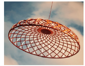 中央に電球やモジュールは存在せず、中央から放射状に並ぶ、LEDと⼀体化した24本のテキスタイルチューブが発光します。チューブは照明器具の構造に沿い糸のように織り込まれ、電球を使用した従来の照明器具の常識を覆す、独創的なデザインと機能を併せ持ちます。光を効率よく広げるドーム型のペンダントは、アートのような雰囲気で、空間をドラマチックに演出します。