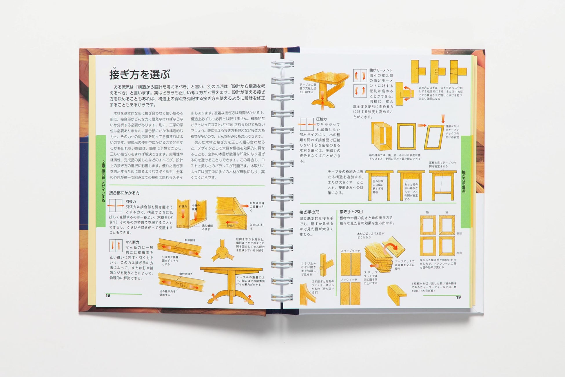 精度と正確さを高める基本工具/ 接合をデザインする/ 木端と削ぎ接ぎ/ 相欠き接ぎと追い入れ接ぎ/ ほぞ接ぎ/ 留め形接ぎと傾斜/ 蟻組接ぎ/ ダボとビスケット/ 留め金具、金物、ノックダウンジョイント/ 接ぎの種類/ 用語解説