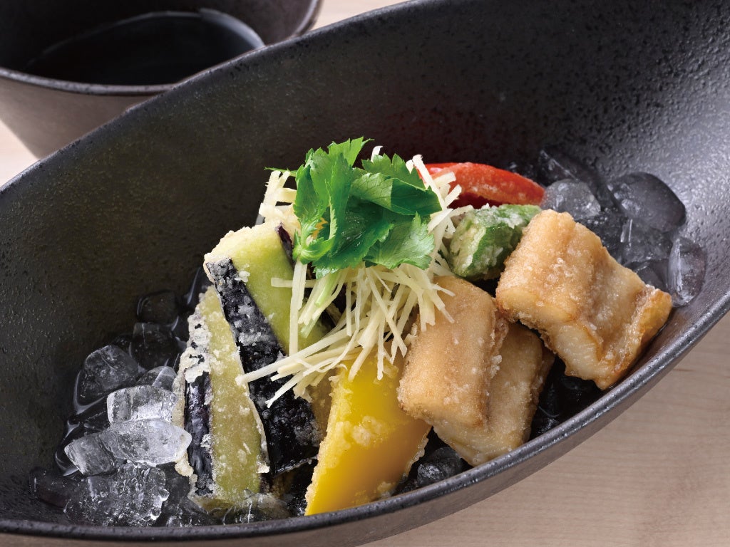 ■煮穴子と夏野菜の冷製揚げびたし 548円(税込603円)