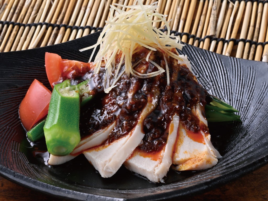 ■しびれる黒い【よだれどり】夏野菜を添えて 548円(税込603円)