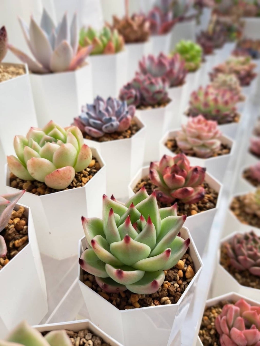 農園で栽培したエケベリアやセダムなど単体の苗