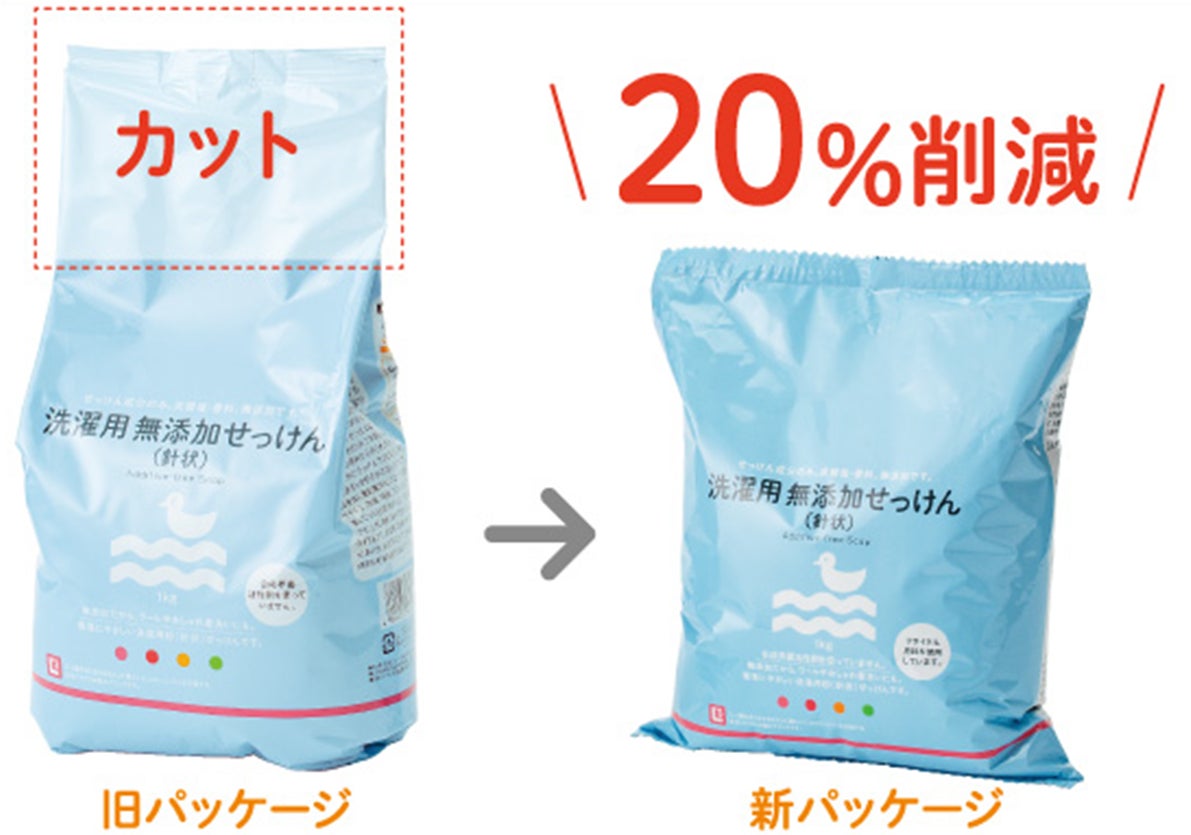 せっけん類の原料・包材を環境に配慮した規格に変更 パーム油を一部廃食用油に、包材を縮小し再生プラ配合へ