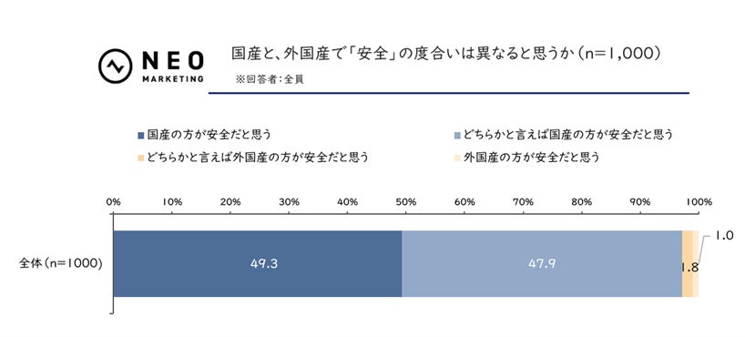 97.2%(※)と大多数が、「国産の方が安全」という意識があるようです。