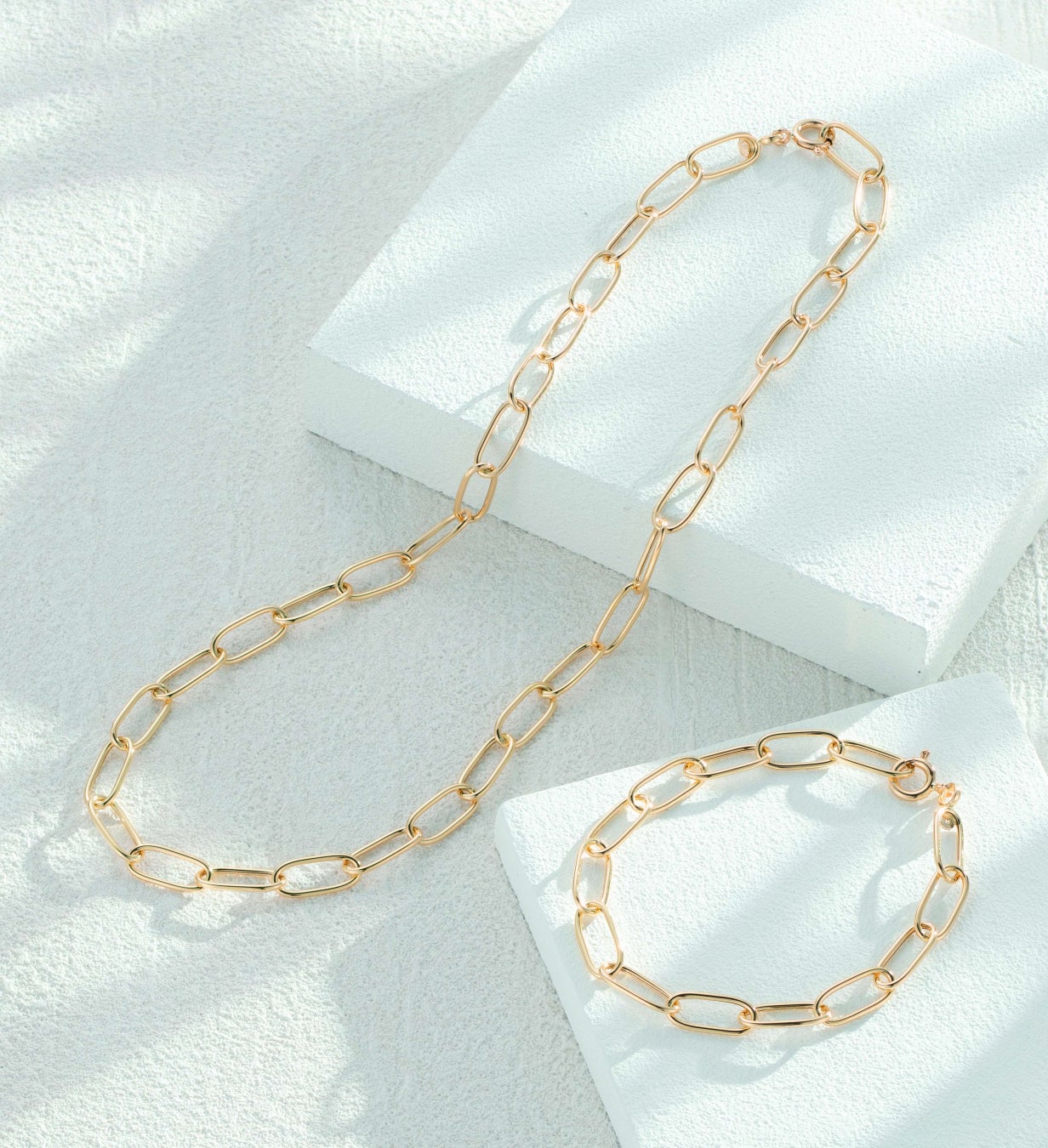 スタイリッシュさと女性らしさが融合した18Kのネックレスとブレスレット。