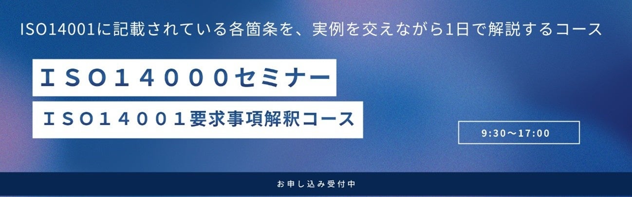 初めて環境マネジメントシステム(EMS)の業務に携わるISO担当者だけでなく、組織全ての管理者及び内部監査員の方々を対象として、ISO14001に記載されている各箇条を実例を交えながら1日で解説するコースです。ISO14001規格の本来の意図を正しく理解していただき、自社EMSの有効性を高めるためにご活用ください。