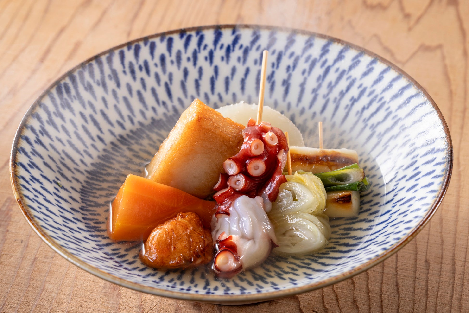 ふわっと香る出汁、立ち上がる湯気からも美味しさが感じられる「おでん盛り合わせ」
