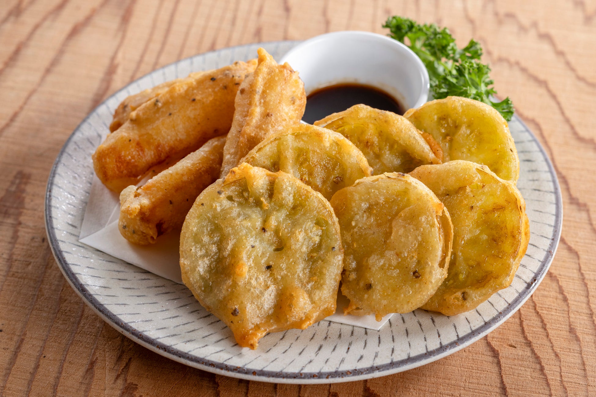 赤みを帯びる前のトマトをスパイシーな衣で包み、カラッと揚げることで、柔らかな酸味とジューシーさ、食べごたえのある食感に仕上がりました。