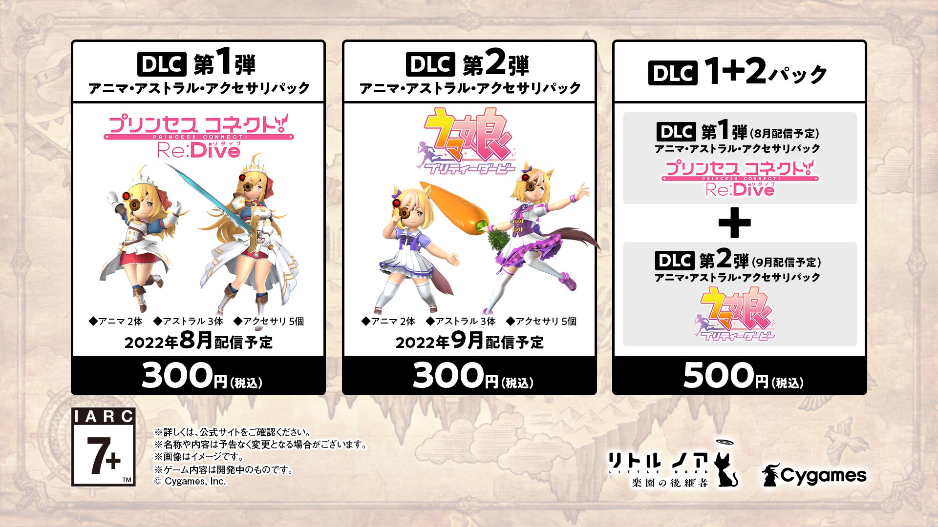- 『プリンセスコネクト!Re:Dive』『ウマ娘 プリティーダービー』とのコラボアイテムを収録したDLCも発売決定!