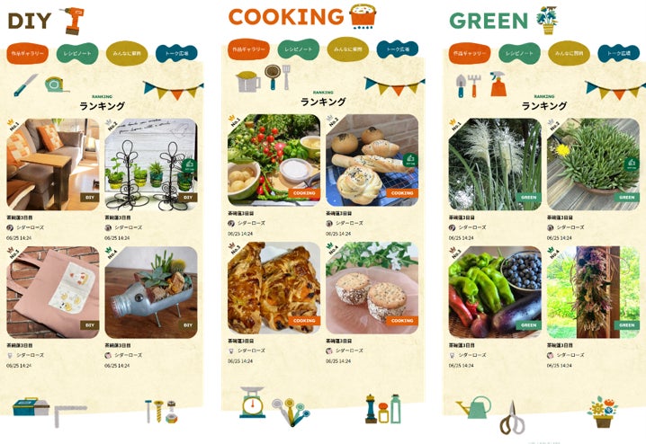ユーザーが「得たい」・「知りたい」情報をスムーズに見つけ、写真を見てレシピの参考にしたり、会員同士でコミュニケーションをとったりしやすいように、これまでも投稿が多かった「DIY」、「グリーン」、「料理」、「ペット」、「ワークショップ」の5つの人気ジャンルで、それぞれページを作成。初めてコミュニティを訪れた人でも直感的に使いやすい設計で、SNSのように気軽に投稿を見ることができ、同じ趣味をもつ仲間と交流しやすくなりました。