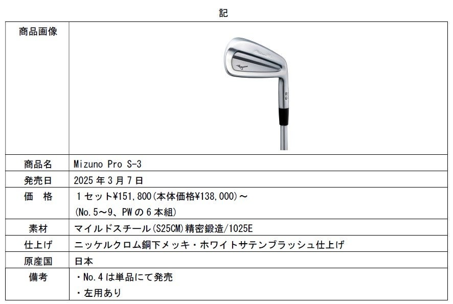ゴルフクラブ「Mizuno Pro S-3」アイアン発売
