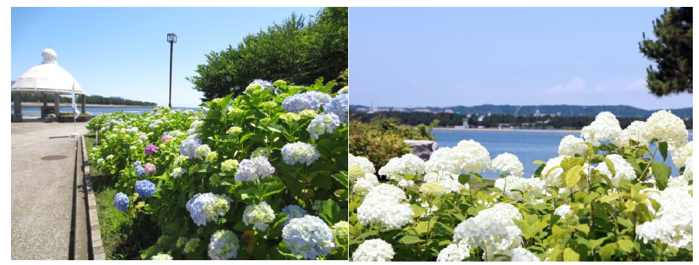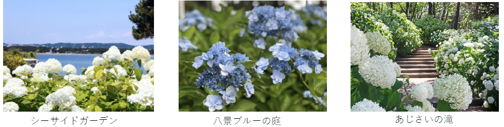 海に囲まれた八景島の島内には、さまざまな花々が季節ごとに咲き誇り、初夏には県内最大級を誇る2万株の「セイヨウアジサイ」や「ガクアジサイ」、八景島のオリジナルあじさい「八景ブルー」など、色とりどりの「あじさい」が見ごろを迎えます。